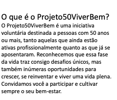 Quero receber, g r á t i s, a Newsletter e Comunicados do Projeto 50ViverBem